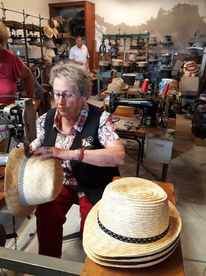 De la paille tressée naît, sous les yeux des visiteurs, un chapeau : couture, mise en forme, garniture, toutes les étapes de la fabrication sont présentées.